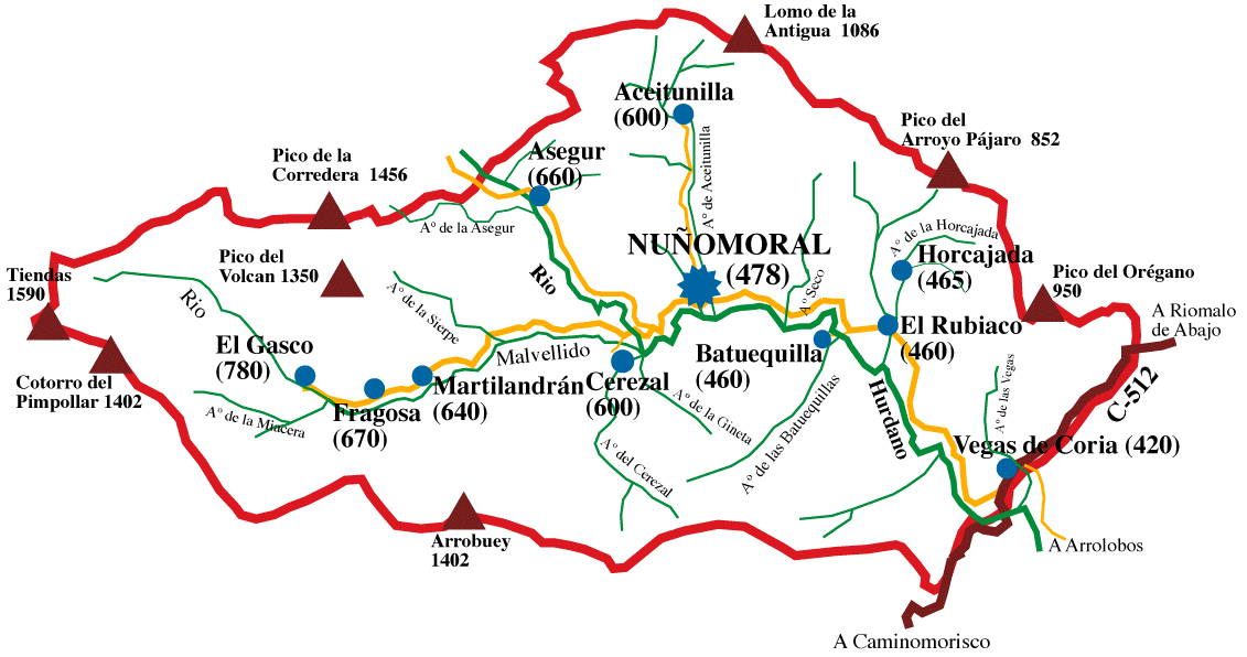 El término municipal de Nuñomoral está situado al norte de la provincia de Cáceres y forma parte de la Mancomunidad de Municipios de las Hurdes. El río Malvellido cruza por las alquerías de esta encantadora localidad, dotándola de un entorno natural excepcional y contribuyendo a la belleza de su paisaje. Las alquerías tradicionales de Nuñomoral, construidas con materiales locales como la pizarra, son testigos silenciosos de la historia y la cultura de Las Hurdes, ofreciendo una visión única de la vida rural en esta región montañosa.